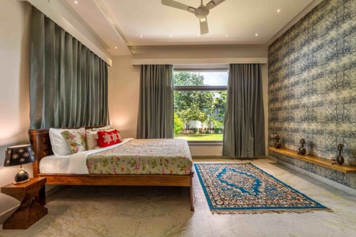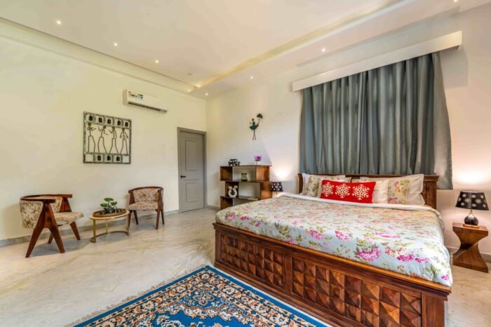 Begin your day at Kuber Vatika with a steaming cup of chai in hand, soaking in the crisp Jaipur morning and sweeping views from the verdant lawn. After a hearty breakfast, lounge by the private pool or explore the lush garden, home to a rich variety of flora. Late morning invites friendly competition with a round of indoor or board games. In the afternoon, step out to explore Jaipur’s nearby attractions, majestic forts, vibrant bazaars, and architectural wonders await just a short drive away. Return by early evening to unwind in the tranquil sit-outs as golden hour sets in. As night falls, gather around a crackling bonfire, while a sizzling barbecue adds warmth and flavour to your evening. At Kuber Vatika, the day is yours to design, serene, spirited, and soaked in the charm of the Pink City.