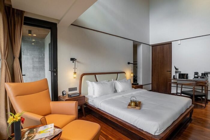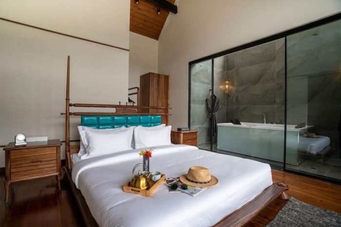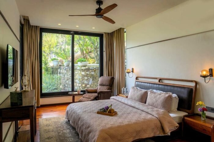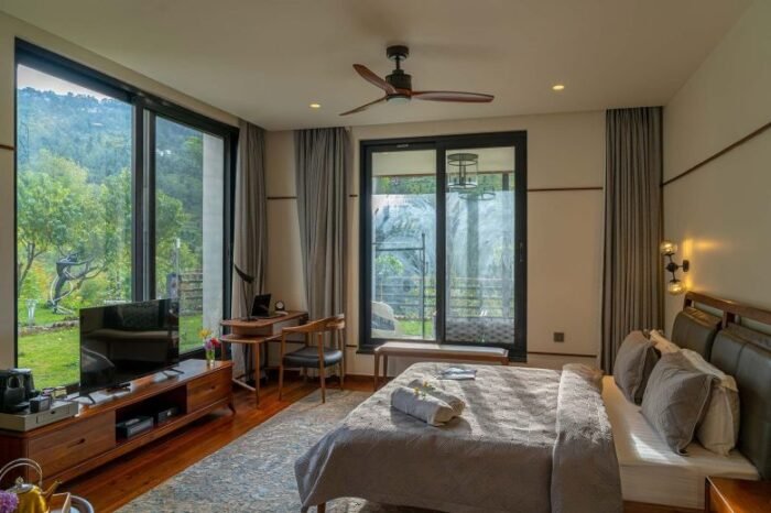 Each room draws inspiration from the orchards that surround it—think delicate interiors, restful tones, and a warmth that feels deeply personal. Some rooms are minimal and modern, others nostalgic with vintage touches, but all open up to the same breathtaking truth: the mountains, in all their serene glory, are always within sight.