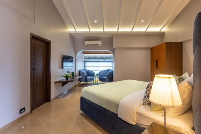 - It opens up to a private layered deck, overlooking the serene landscapes of Lonavala. It can accommodate up to 8 people.