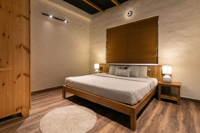 - Classy brick exterior and wooden interiors that keep the house warm and sung