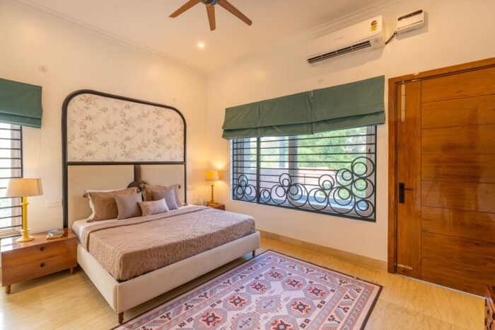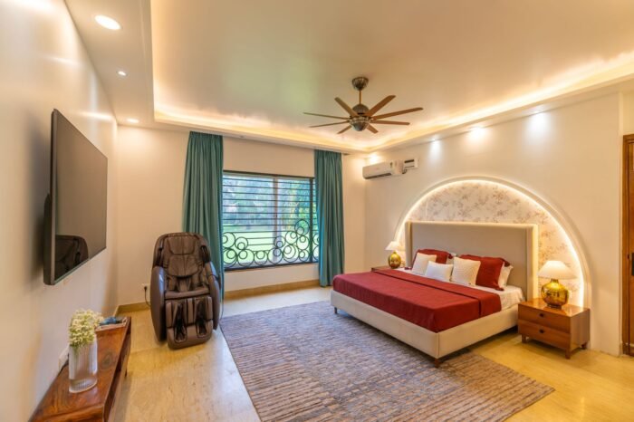 Welcome to Imperial Isle, your stylish escape in Sonha, Delhi NCR! This 4-bedroom villa in Sonha is where sleek minimalism meets cosy comfort, perfect for a chic yet laid-back getaway with friends and family. Dive into the refreshing pool, have your favourite cocktail from the bar, or unwind by the bonfire under a canopy of stars. With clean, spacious interiors and a beautiful lawn ideal for outdoor fun, there’s plenty of room for you—and your furry friends! Whether you're looking for peaceful views or a pet-friendly retreat, Imperial Isle offers a trendy, relaxed vibe that’s simply irresistible. This is not just a stay, it's an experience wrapped in serenity.