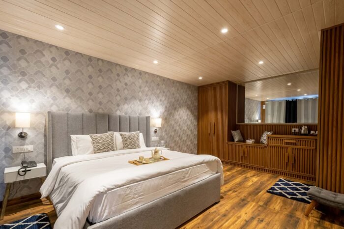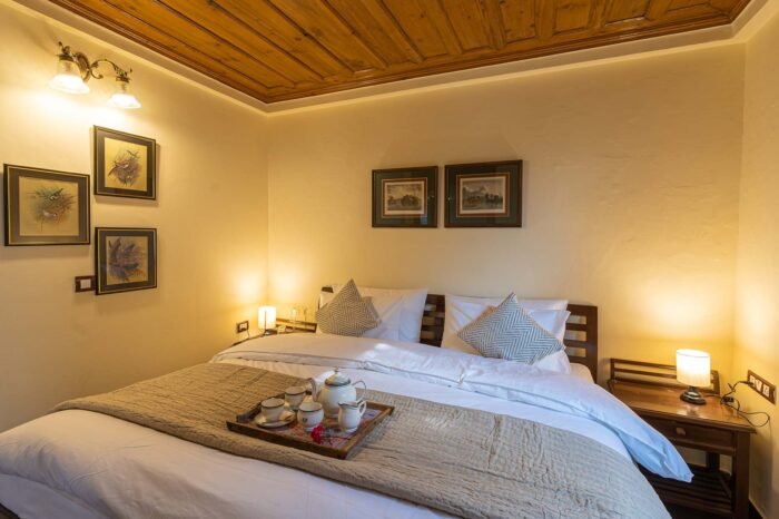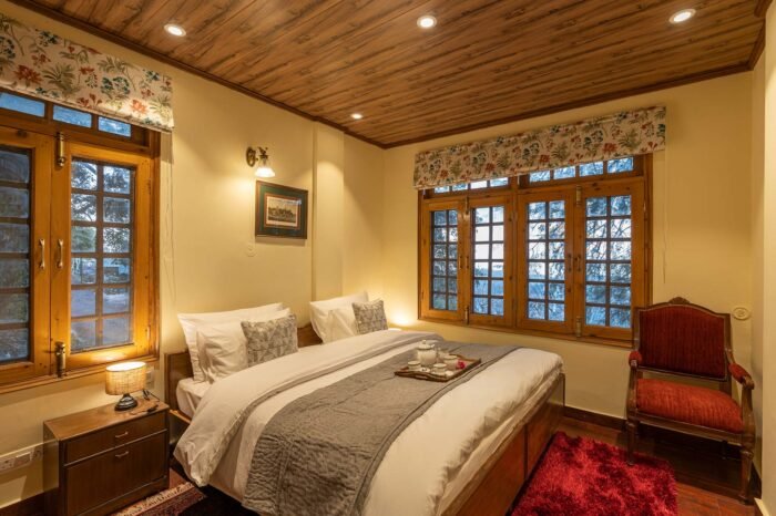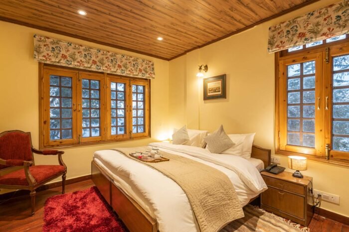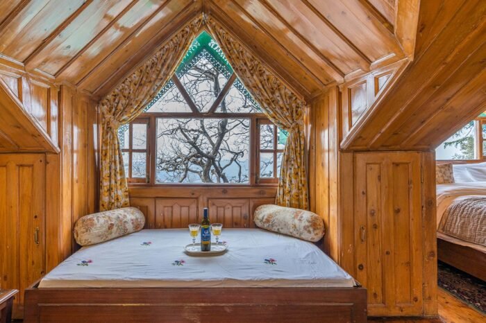 With breathtaking landscapes, vibrant facades and distinct gable roofs, Nau Nabh Cottage is almost paradisiacal. Located in the beautiful summer capital of India, this century-old villa is spread across 2 cottages that promise a getaway unlike any other. The home itself was built during the British Raj and served as the summer home for Britishers owing to its cool climate and scenic landscapes. Not only is it nestled in the lap of nature, but also the home overlooks unrivalled valley views. The verdant exteriors entice blissful moonlit strolls, whilst the bedrooms offer almost unreal views of the rising mountains. The interiors of the cottages are a seamless potpourri of comfortable furnishings and colonial architecture. Hosting a range of cosy nooks, ideal for unwinding and relaxing, this home will leave you wanting more!